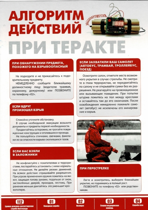 🔴неожиданное движение или шум могут повлечь жестокий отпор со стороны террористов. Не допускайте действий, которые могут спровоцировать террористов к применению оружия и привести к человеческим жертвам;