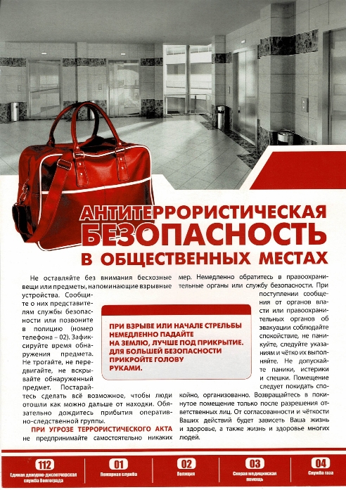 ✅При обнаружении забытых вещей, не трогая их, сообщите об этом водителю, сотрудникам объекта, службы безопасности, органов милиции. Не пытайтесь заглянуть внутрь подозрительного пакета, коробки, иного предмета.