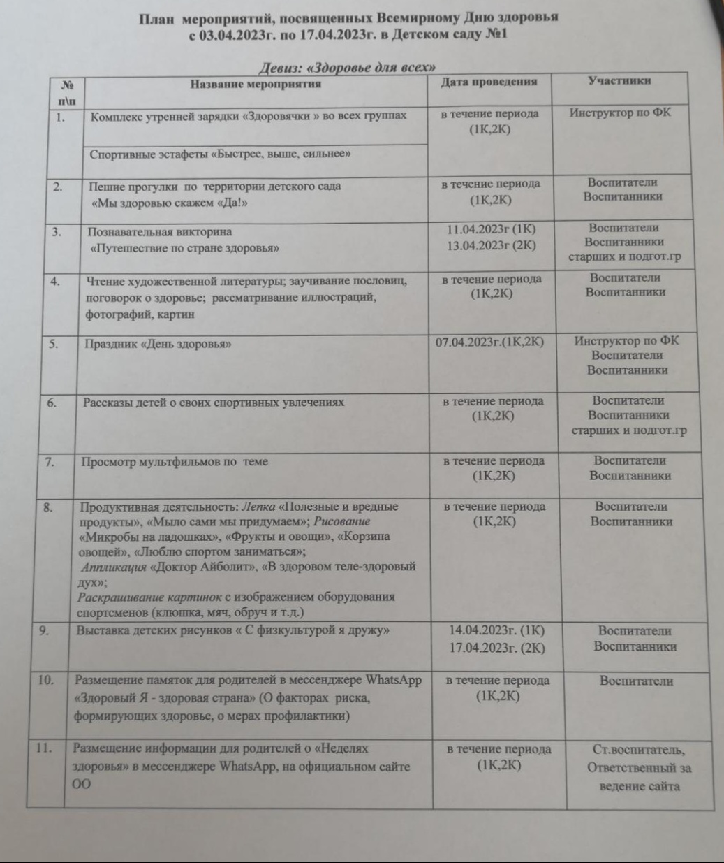 В соответствии с Планом мероприятий, посвященных Всемирному Дню здоровья (смотреть) , в детском саду проведены различные мероприятия
